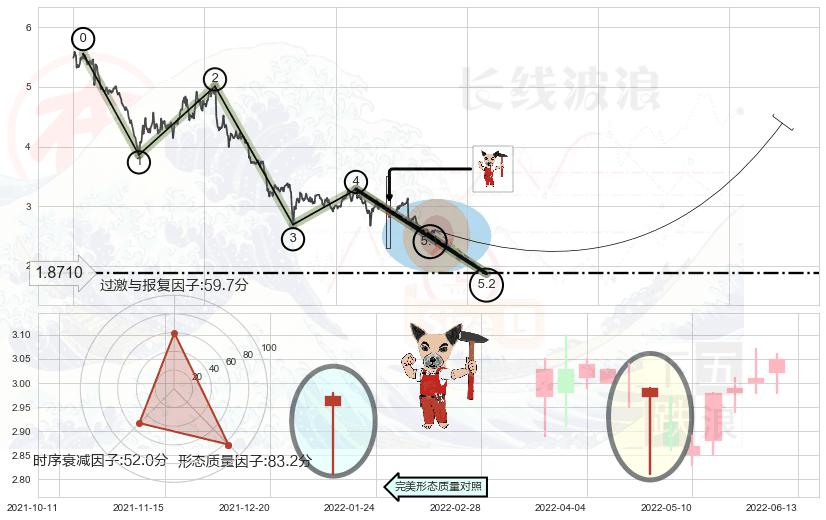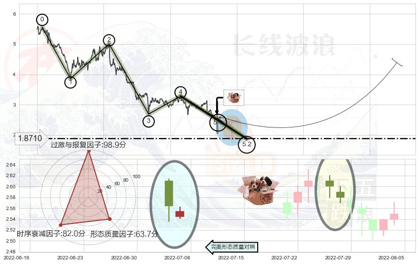 ➣ 5.1: 预测当前第5浪位置(2022-08-02, 2.520),仍然有下跌空间