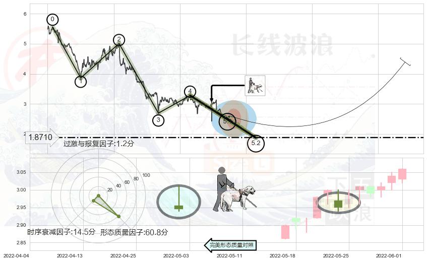➢ 锤头线(锤子线) 🔜 波浪理论下跌浪临近浪5反弹点 综合量化分数:59.59 【偏多】