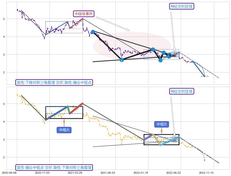 ➢ 下降对称三角整理属【中级别信号事件】缠论中枢点属【长级别信号事件】中长周期组合信号事件,中长事件长度比45.51%