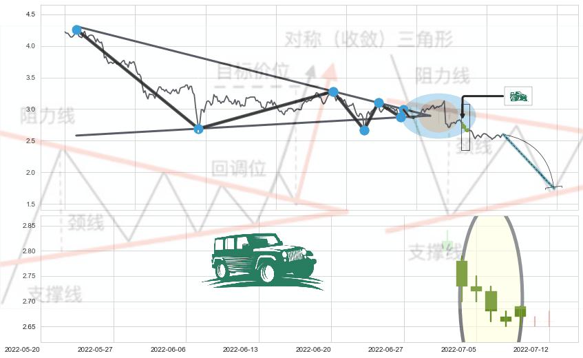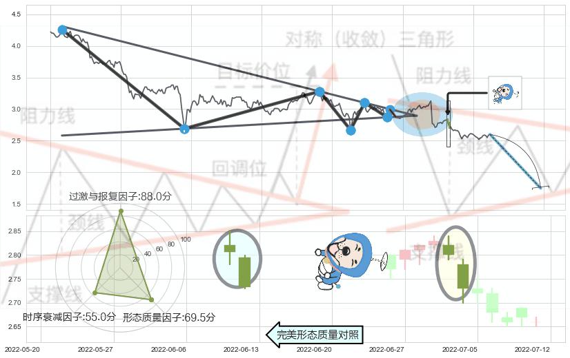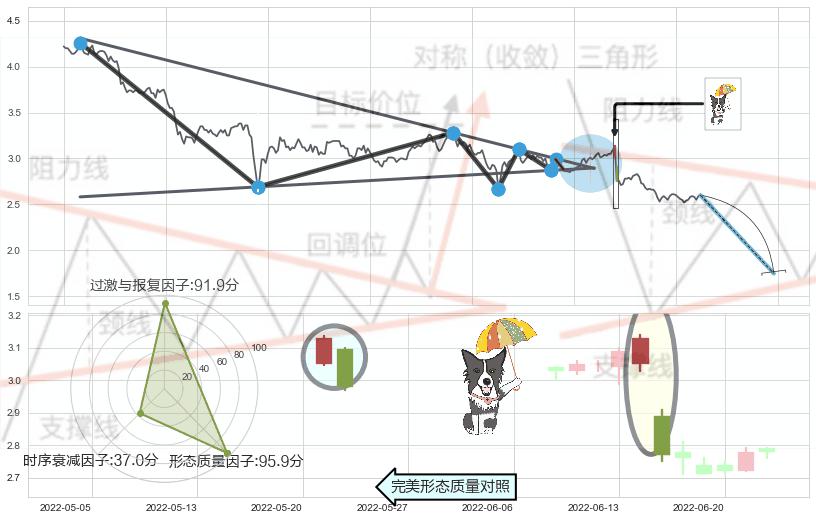 ➢ 【卖1】: 激进型 卖点→(2022-05-06: 2.878 )形成突破下降【对称】三角形整理【整理】形态