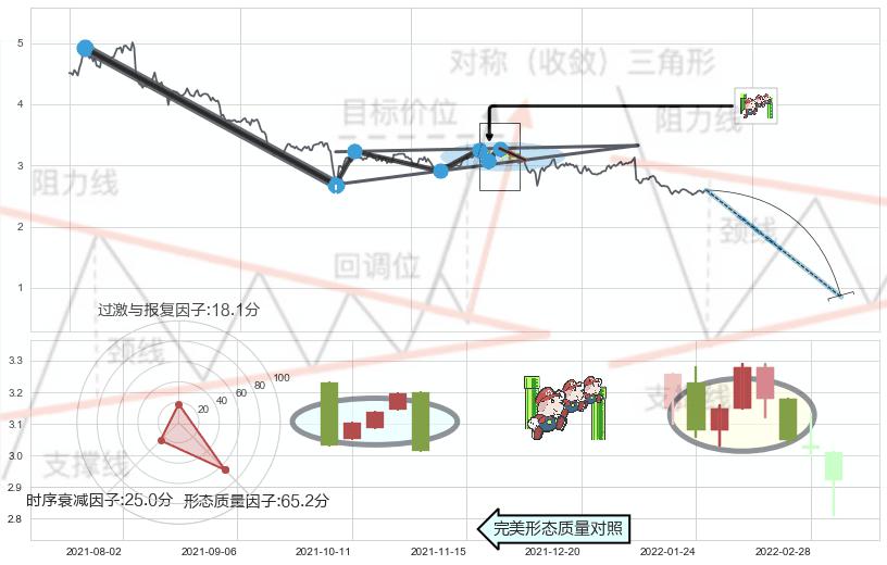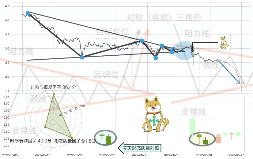 ➢ 下降【对称】三角形整理综合量化分数: 38.01 【强烈看空】