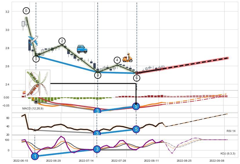 ➣ 波浪理论:猜想即将止跌 → 上涨 →【拐点】浪5临近 → 大趋势均值回复