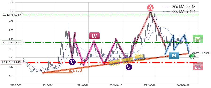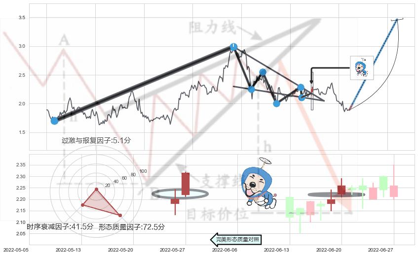 ➢ 【买1】: 激进型 买点 →(2022-06-17: 2.178 )形成突破降🚩楔型【整理】形态