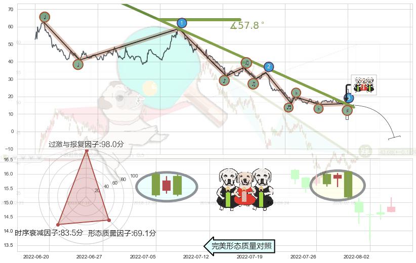 从2020-08-05至2022-08-12,共包含498个交易日,阶段股价下跌-123.34%,阶段股价变动位移路程比: 1 : 8,下跌趋势角度: 57.8