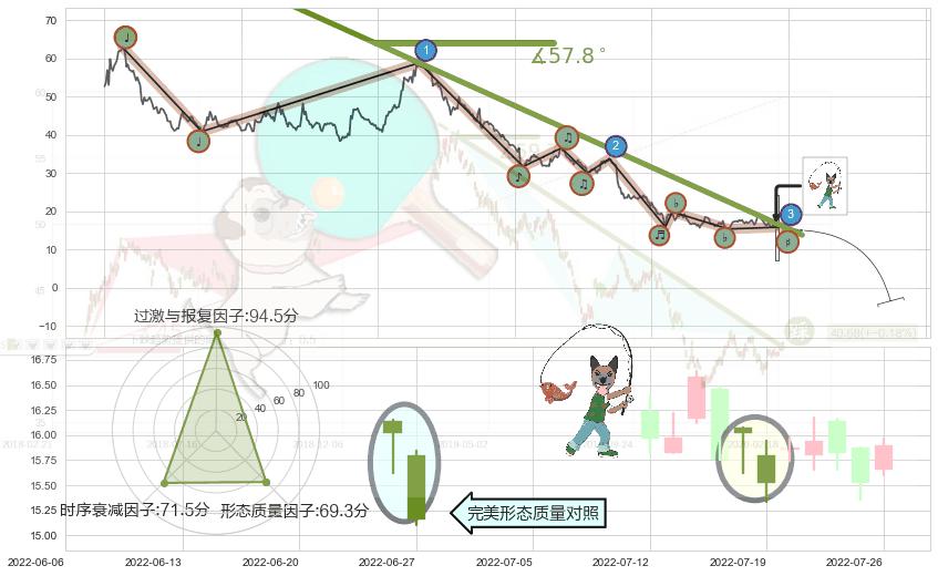 ➢ 🕰 价格走势在2022-07-18至2022-07-19期间形成吊颈线(上吊线),残存影响值:-3.90