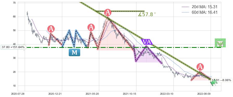 ♘ 阻力价格位37.80,可信任强度63.31%,距离最后交易2022-08-12形成的收盘价格15.02相差 +151.64%