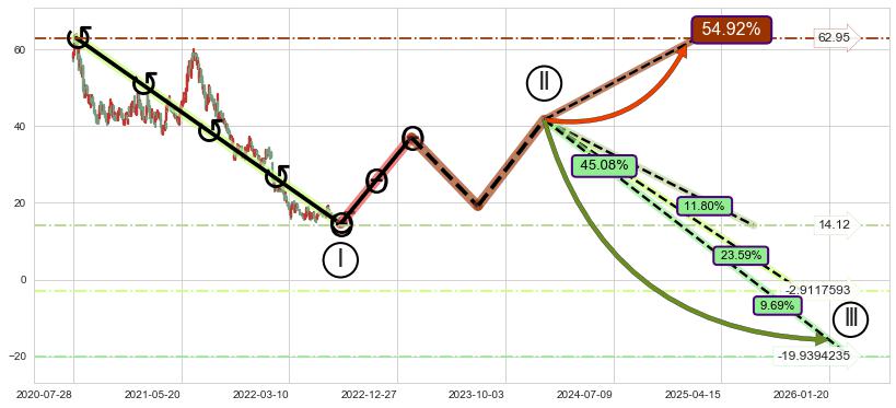 ➣ 波浪理论:猜想止跌 → 上涨 →【拐点】浪5已完成 → 大趋势均值回复