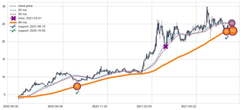 👍 尚未达到多条均线预测的最高波峰价格的平均值, 预期继续上涨