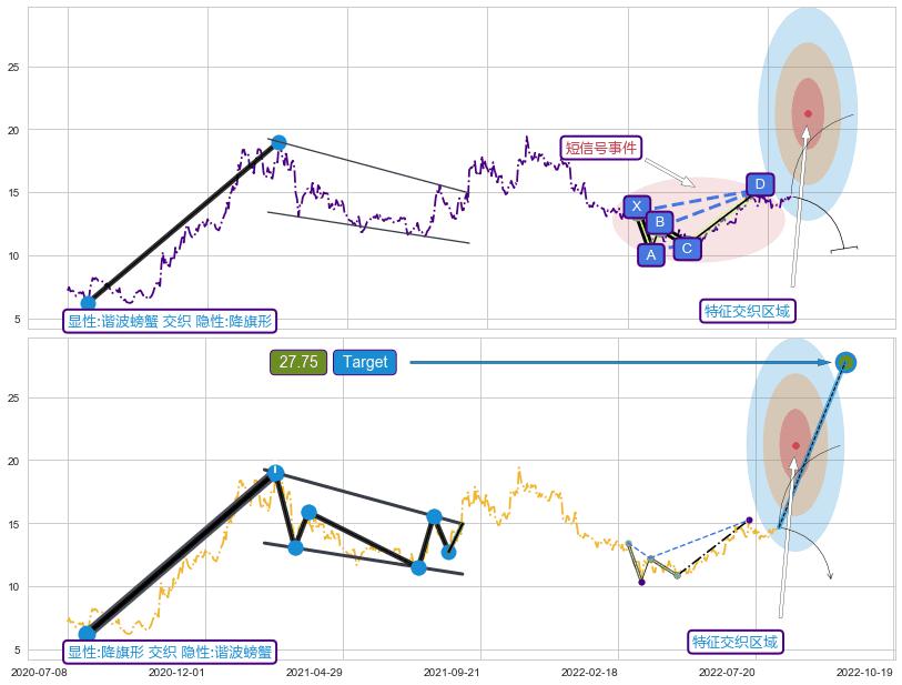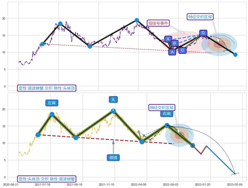 ➢ 谐波螃蟹属【短级别信号事件】头肩顶属【长级别信号事件】长短周期组合信号事件, 短长事件长度比18.82%