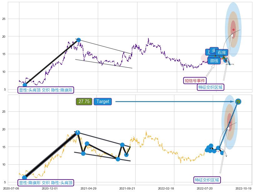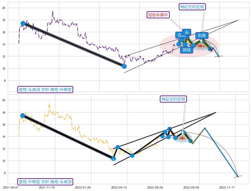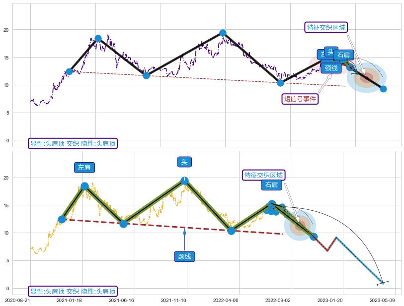 ➢ 趋势线属【短级别信号事件】头肩顶属【长级别信号事件】长短周期组合信号事件, 短长事件长度比16.28%