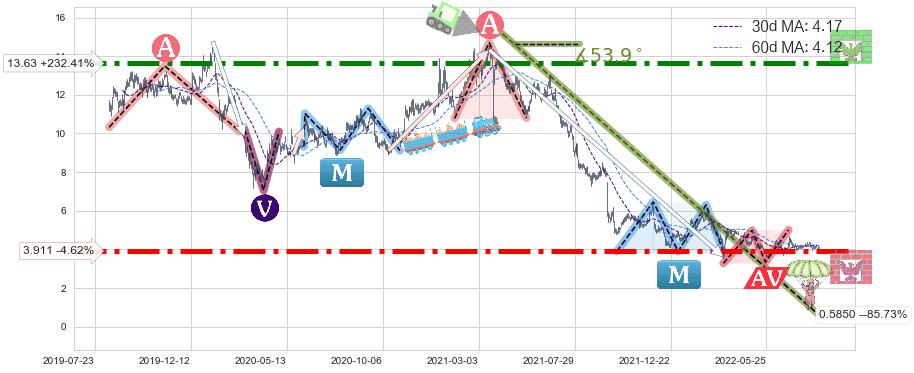 ♘ 阻力价格位13.63,可信任强度99.00%,距离最后交易2022-08-12形成的收盘价格4.10相差 +232.41%