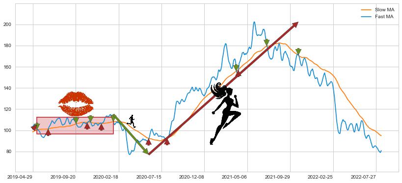 2019-05-15至2020-01-31 慢线与快线多次接触,存在上下穿越,有缠绕