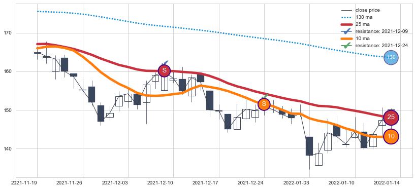 ➣ 历史趋势中共发现17处重要支撑阻力位,其中关键支撑位8处, 关键阻力位9处