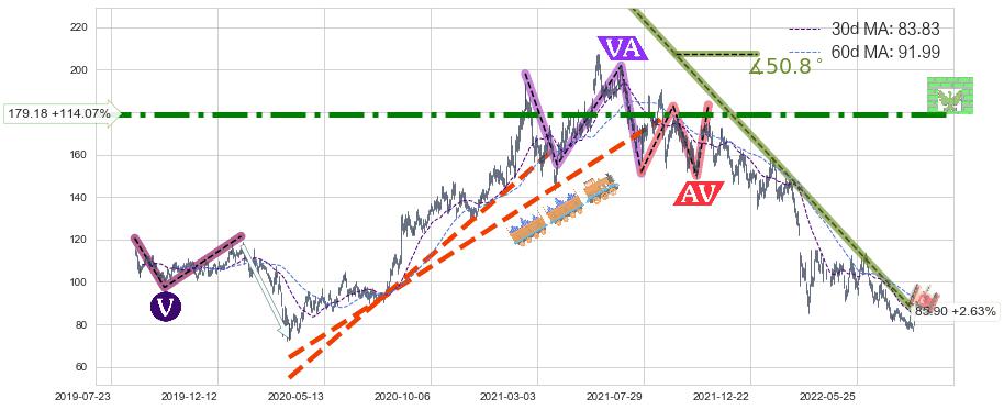 ♘ 阻力价格位179.18,可信任强度97.59%,距离最后交易2022-08-12形成的收盘价格83.70相差 +114.07%