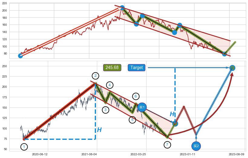 ➣ 最小中继整理涨幅→𝐇: 134.45 (𝐇旗杆的长度:旗杆起点→顶点)