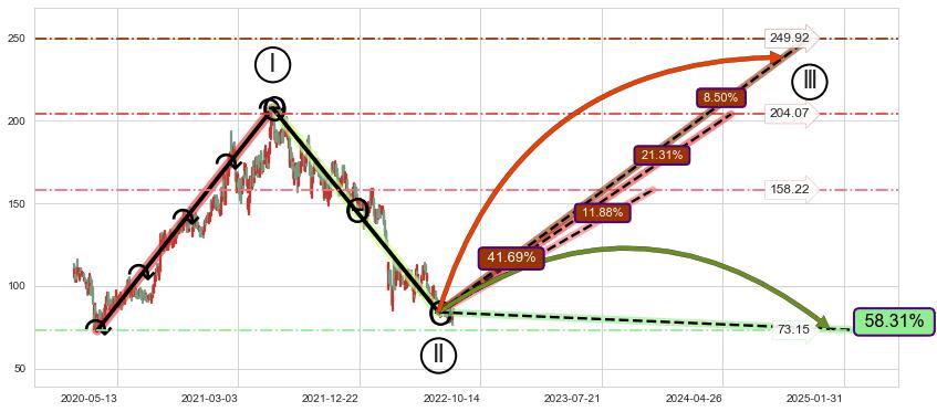 ➢ 【仅预测突破】最后价格:83.70与预测突破价格:111.23→【空间较大】后续最小【整理】第一目标价格→(2023-08-09: 245.68 )