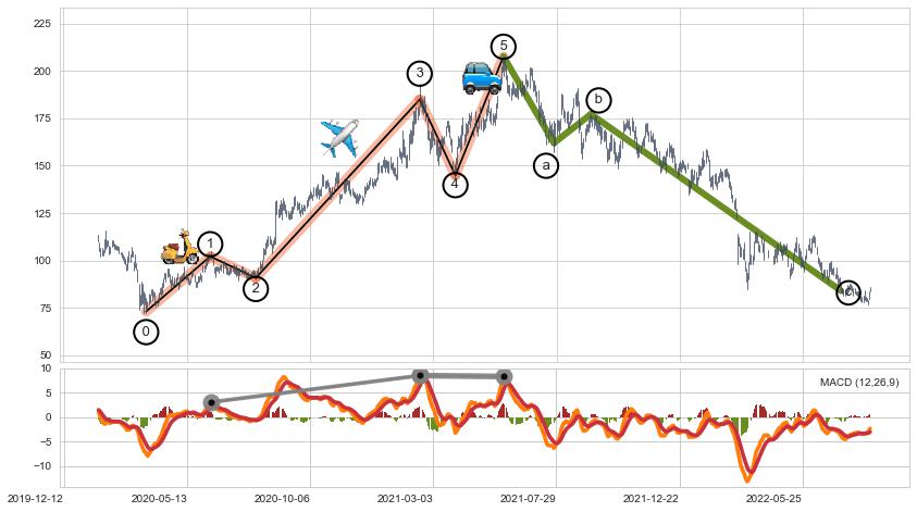➣ 波浪理论:猜想达到c点后小回调终止反转上涨 → 上涨 → 【拐点】临近 → 阶段均值回复结束后继续大周期趋势跟踪