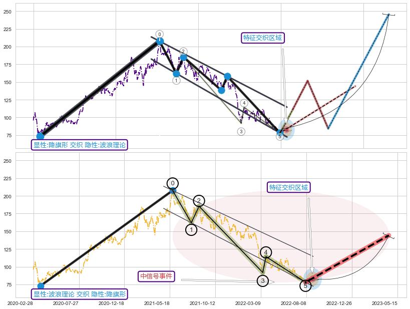 ➢ 波浪理论属【中级别信号事件】降旗形属【长级别信号事件】中长周期组合信号事件,中长事件长度比50.76%