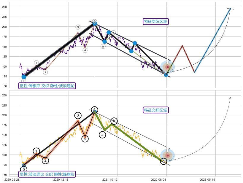 ➣ 上涨螺旋桨形态 + 波浪理论下跌浪:浪5反弹拐点信号叠加后【信号初始稳固度】低,【看多】信号叠加【可信度影响小】