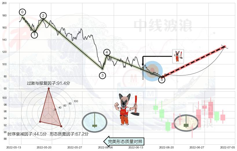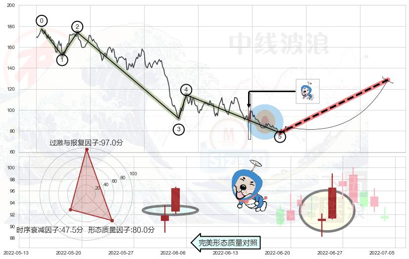 ➢ 曙光初现形态 🔜 波浪理论下跌浪:浪5反弹拐点 综合量化分数:52.74 【中性】