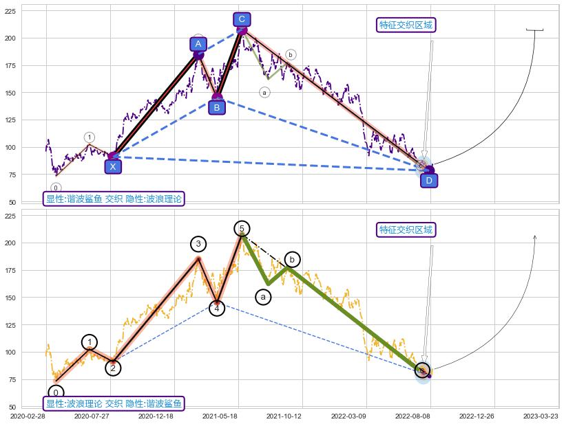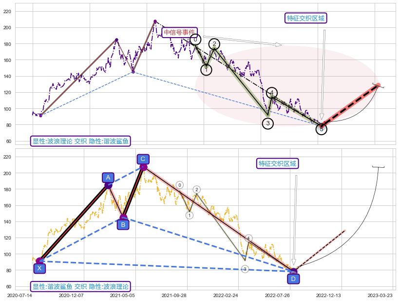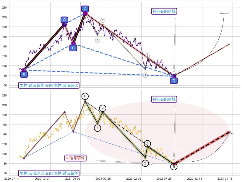 ➢ 谐波鲨鱼与波浪理论信号事件周期长度级别相同,同周期信号事件