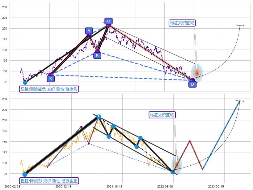 ➣ 已完成【鲨鱼】形态起点X: 2020-08-03, 终点D: 2022-08-04, 共494交易日