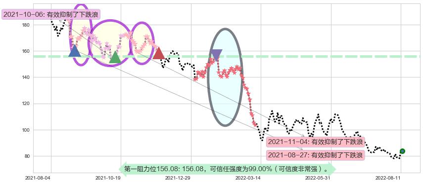 ♘ 阻力价格位156.08,可信任强度99.00%,距离最后交易2022-08-12形成的收盘价格83.70相差 +86.48%