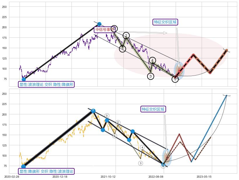 ➢ 波浪理论属【中级别信号事件】降旗形属【长级别信号事件】中长周期组合信号事件,中长事件长度比40.92%