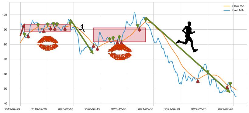 2021-03-23至2022-07-13 慢线与快线呈空头排列, 慢线与快线接触少,无缠绕
