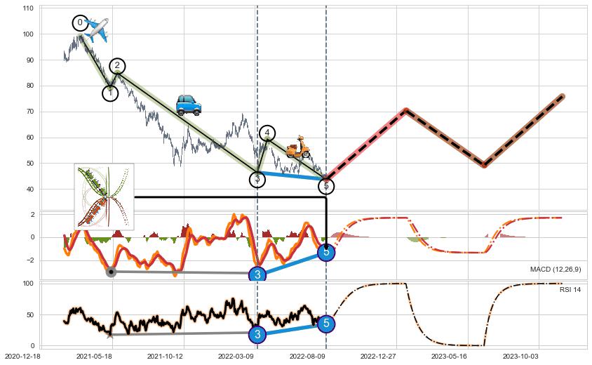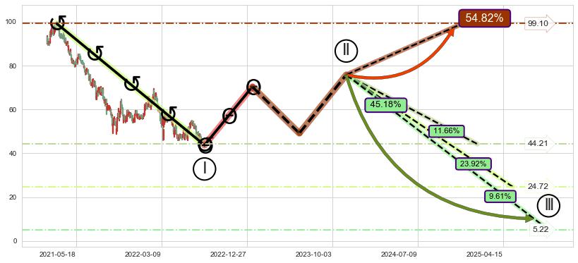 ➢ AI预测: 假定反转启动后, 第❷目标位置(2023-05-10, 51.35)