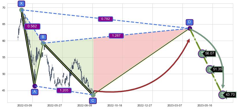 ➣ D点拟合预测价格63.72,距离最后交易收盘价格44.90相差 +41.91%