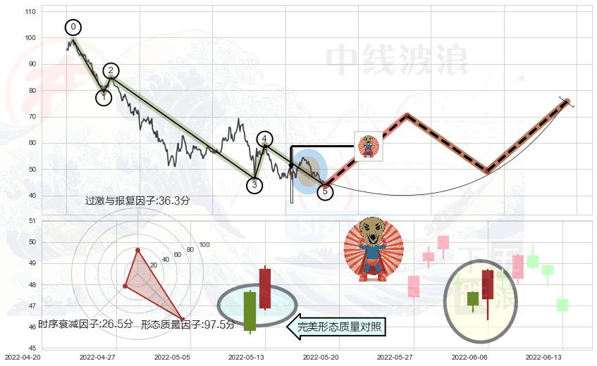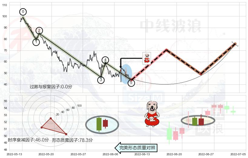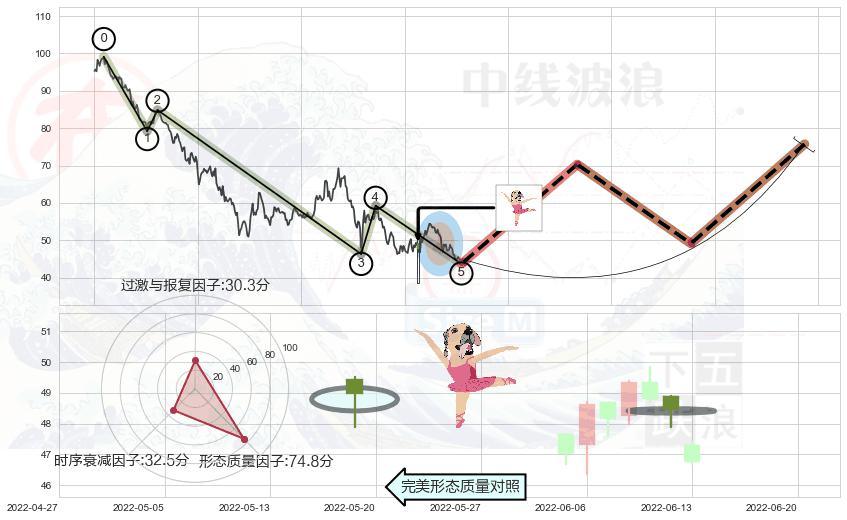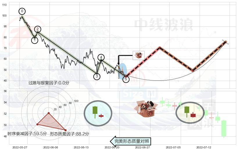➢ 中流砥柱形态 🔜 波浪理论下跌浪:浪5反弹拐点 综合量化分数:53.20 【中性】