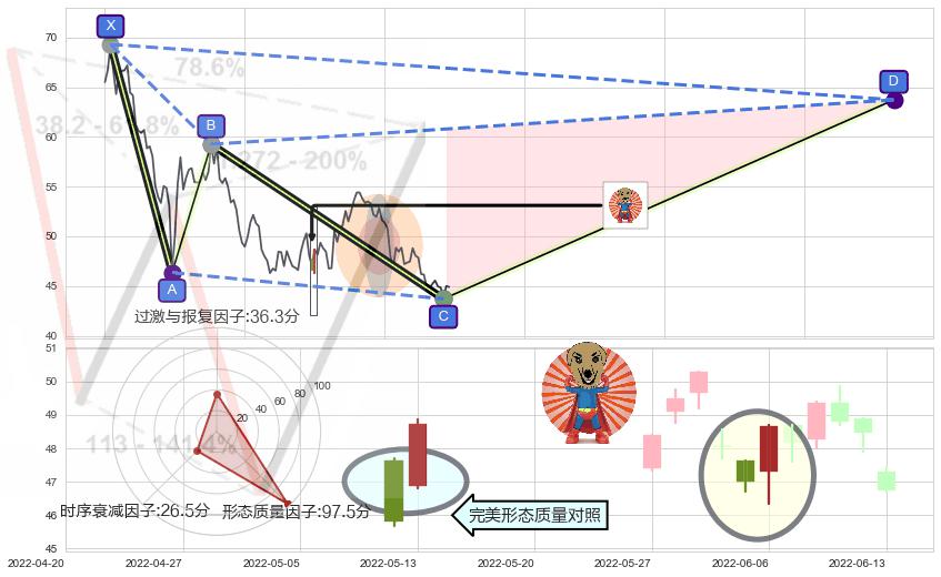 ➢ 看涨(低位)倒锤头线 🔜 谐波赛福下沉击穿c上涨拐点 综合量化分数:50.74 【中性】