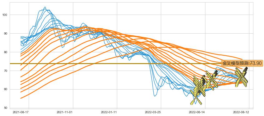 ➢ 90小时均线于(2022-06-23: 64.64)形成【金叉】基于【金叉历史模型】预测金叉后最高波峰价格: 78.92, 金叉后最高价格72.75,尚未达到预测最高波峰价格, 预期继续上涨
