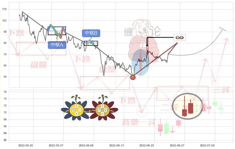 ➣ 缠论买卖点:下降缠中枢AB形成后猜想拐点1买已到达,猜想后续持续拉升(均值回复)