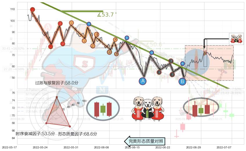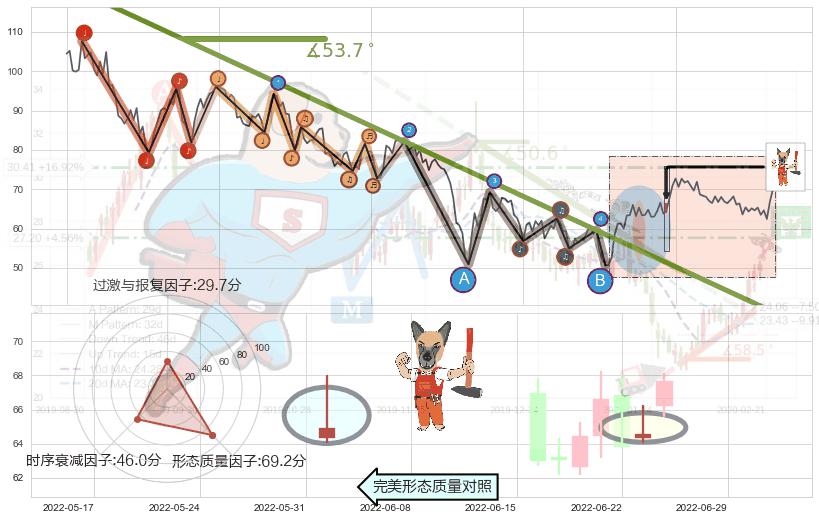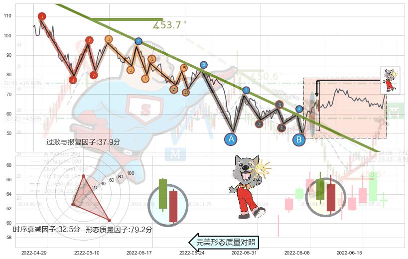 ➢ 2021-09-07-2022-06-07下跌趋势存在反转上涨[机会],其原下跌趋势的阻力位(38.84)已被突破[强支撑信号],原下跌趋势角度: 53.7˚