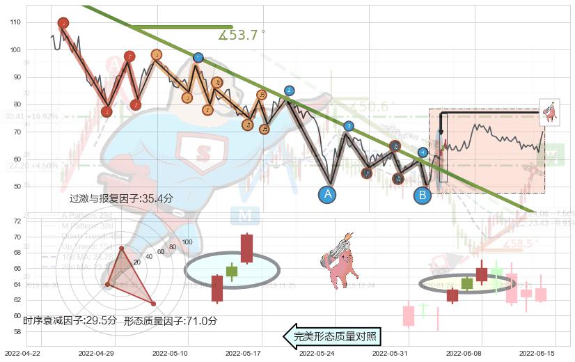 ➢ 🕰 价格走势在2022-06-28至2022-06-30期间形成两红夹一黑,残存影响值:4.29