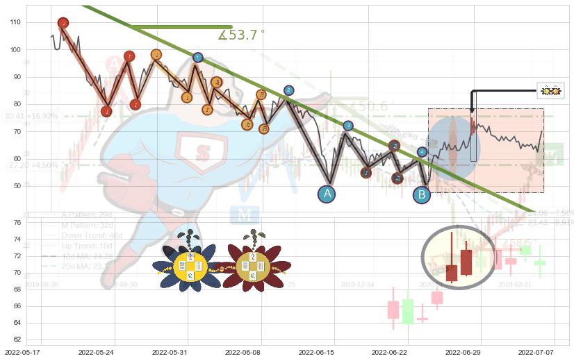 ➢ 【仅预测突破】最后价格:70.10与预测突破价格:62.68→【空间较大】后续最小【整理】第一目标价格→(2022-11-11: 27.83 )