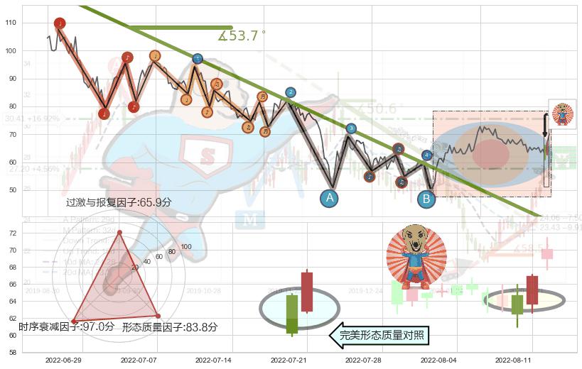 ♘ 支撑价格位66.24,可信任强度52.65%,距离最后交易2022-08-12形成的收盘价格70.10相差 -5.51%
