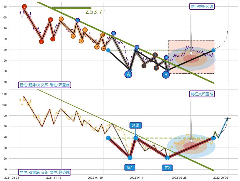➢ 最后的下跌趋势2021-09-07至2022-06-07:存在突破迹象,后续小反弹或者反转上涨