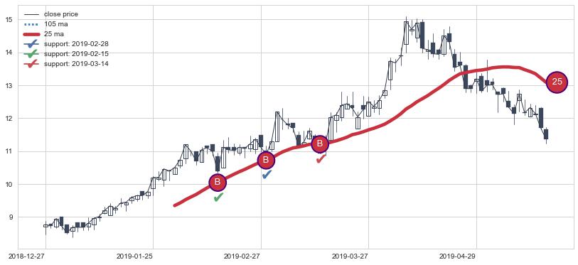 ➢ 最优均线组合共正确确认支撑阻力信号9处,正确确认率 75.00%