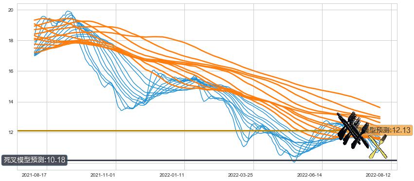 ➢ 21小时均线于(2022-07-08: 12.52)形成【死叉】基于【死叉历史模型】预测死叉后最低波谷价格: 11.44, 死叉后最低价格10.44,已经下跌超出预测最低波谷价格, 预期反弹