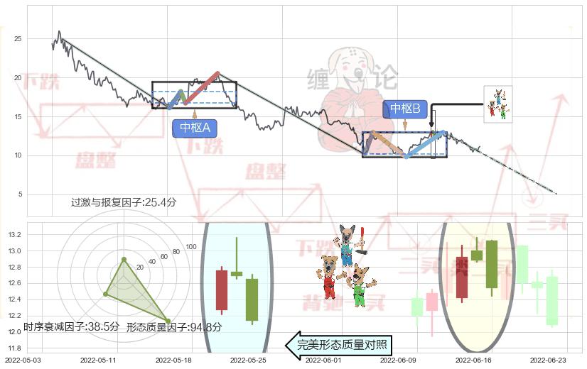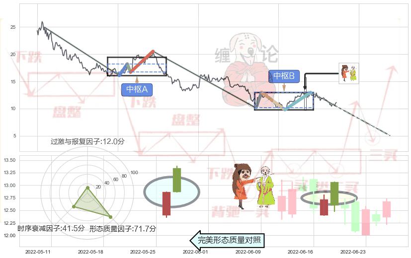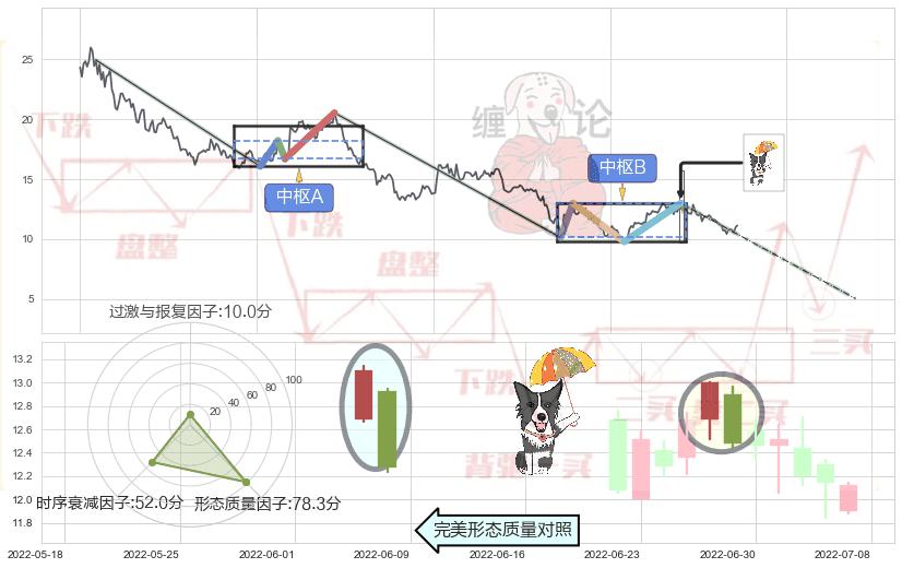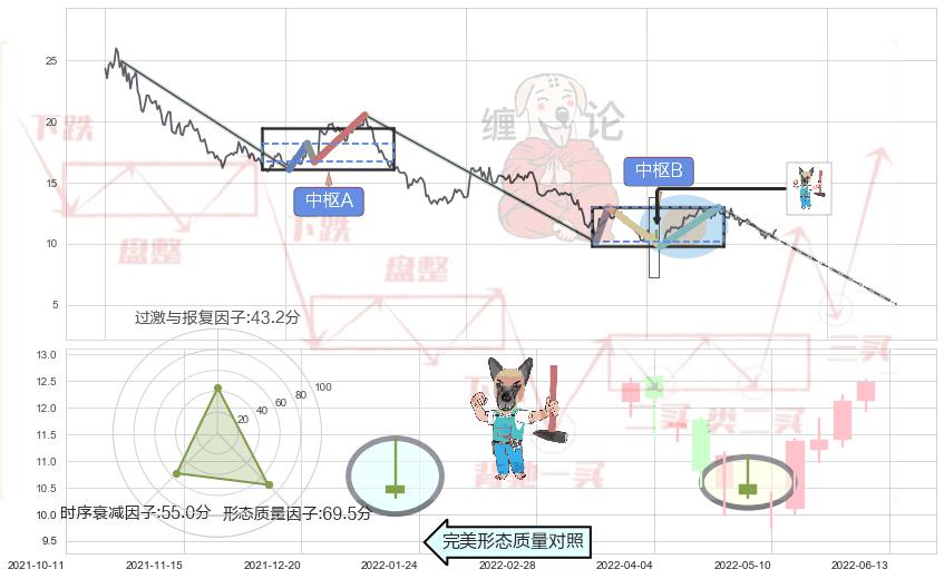 ➣ 【中枢B】:2022-03-15-2022-06-28,中枢由4笔构成,共69交易日, ZG=13.00, ZD=10.14