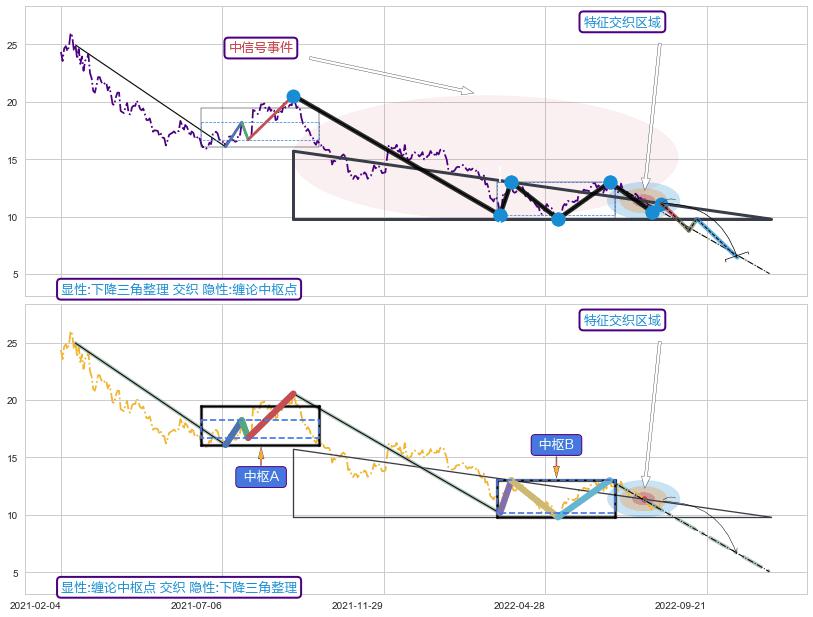 ➢ 下降三角整理属【中级别信号事件】缠论中枢点属【长级别信号事件】中长周期组合信号事件,中长事件长度比62.91%