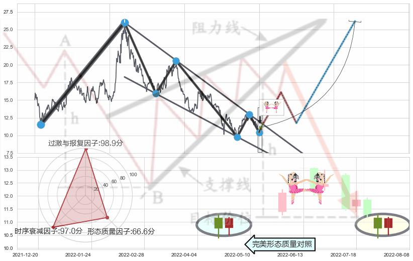 ➣ 【未确认突破,预测即将形成突破】下降三角形整理起点:2021-09-06, 预测突破点:2022-08-26,形态共239交易日