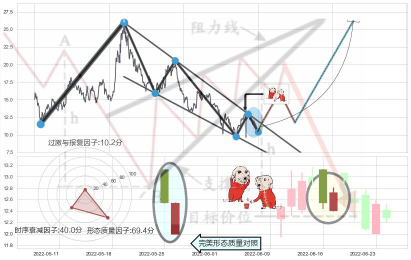 ➢ 🕰 价格走势在2022-06-22至2022-06-23期间形成曙光初现形态,残存影响值:2.18