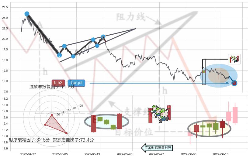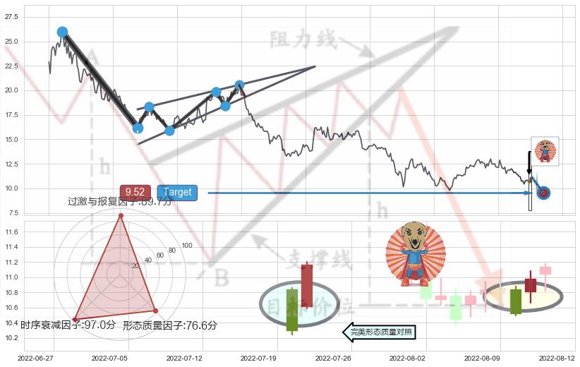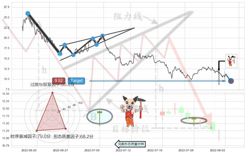 ♘ 支撑价格位9.79,可信任强度74.46%,距离最后交易2022-08-12形成的收盘价格11.14相差 -12.12%