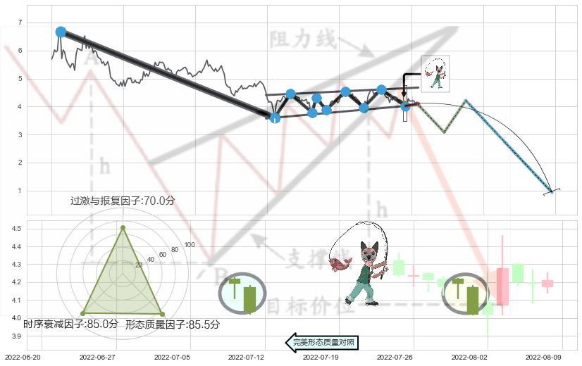 ➢ 🕰 价格走势在2022-07-29至2022-08-01期间形成吊颈线(上吊线),残存影响值:-4.16
