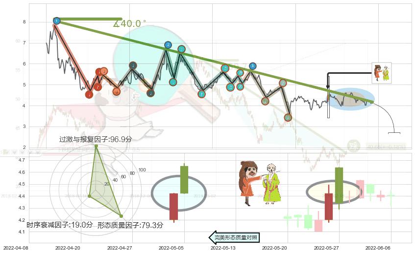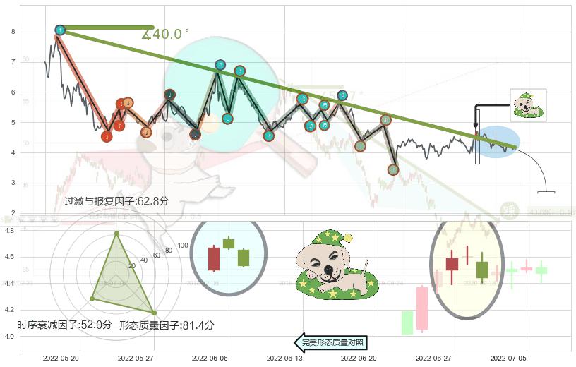 ➢ 【未确认突破,预测即将形成突破】降🚩楔型起点:2022-05-12, 预测突破点:2022-08-15,形态共66交易日