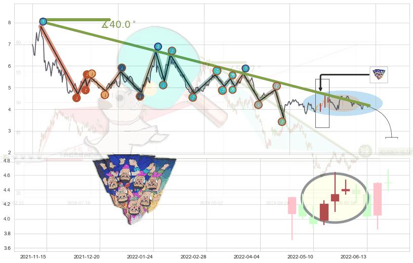 🦴 长线均值回复组合短线趋势跟踪[强阻力信号]2021-01-20-2022-04-25下跌趋势依然成立(下跌趋势跟踪依然存在),短线价格略微上行反弹(均值回复猜想),即将接近下跌趋势提供的未破位阻力价格:4.17。